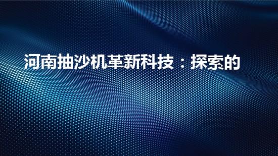 河南抽沙機革新科技:探索的未來?